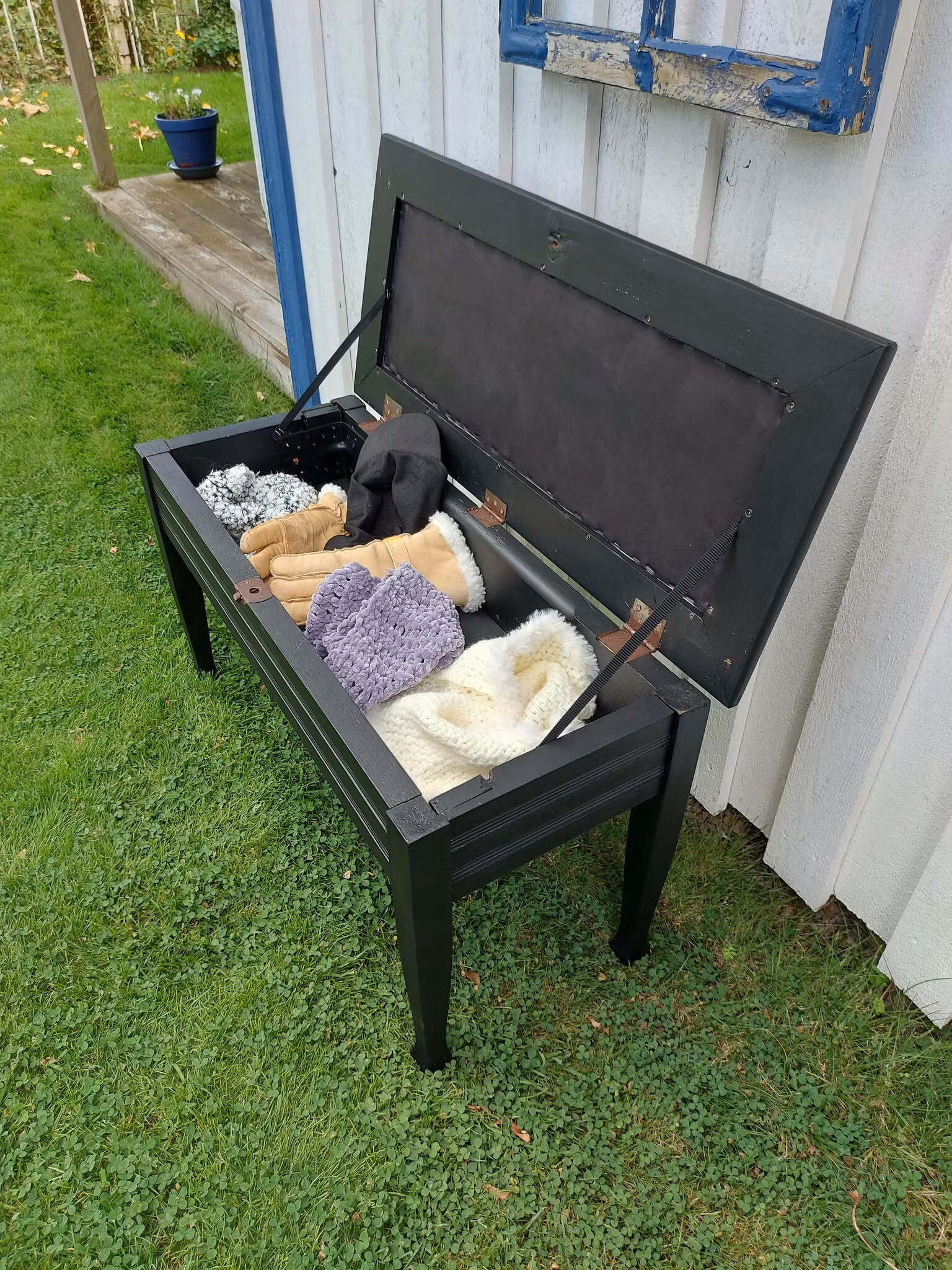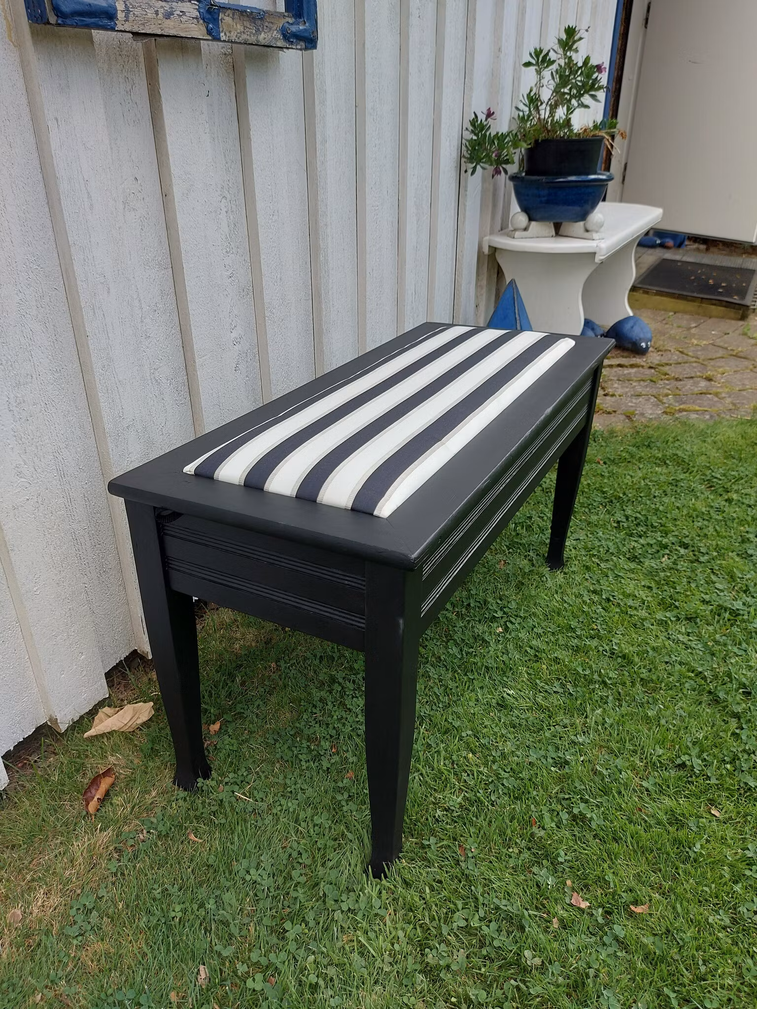 Hem › Sålda produkter › Bänk med förvaring Bänk med förvaring Produkten är tyvärr slut i lager. :( Återbrukad säng från 1910; nu sitt- och förvaringsbänk för hall/sovrum.