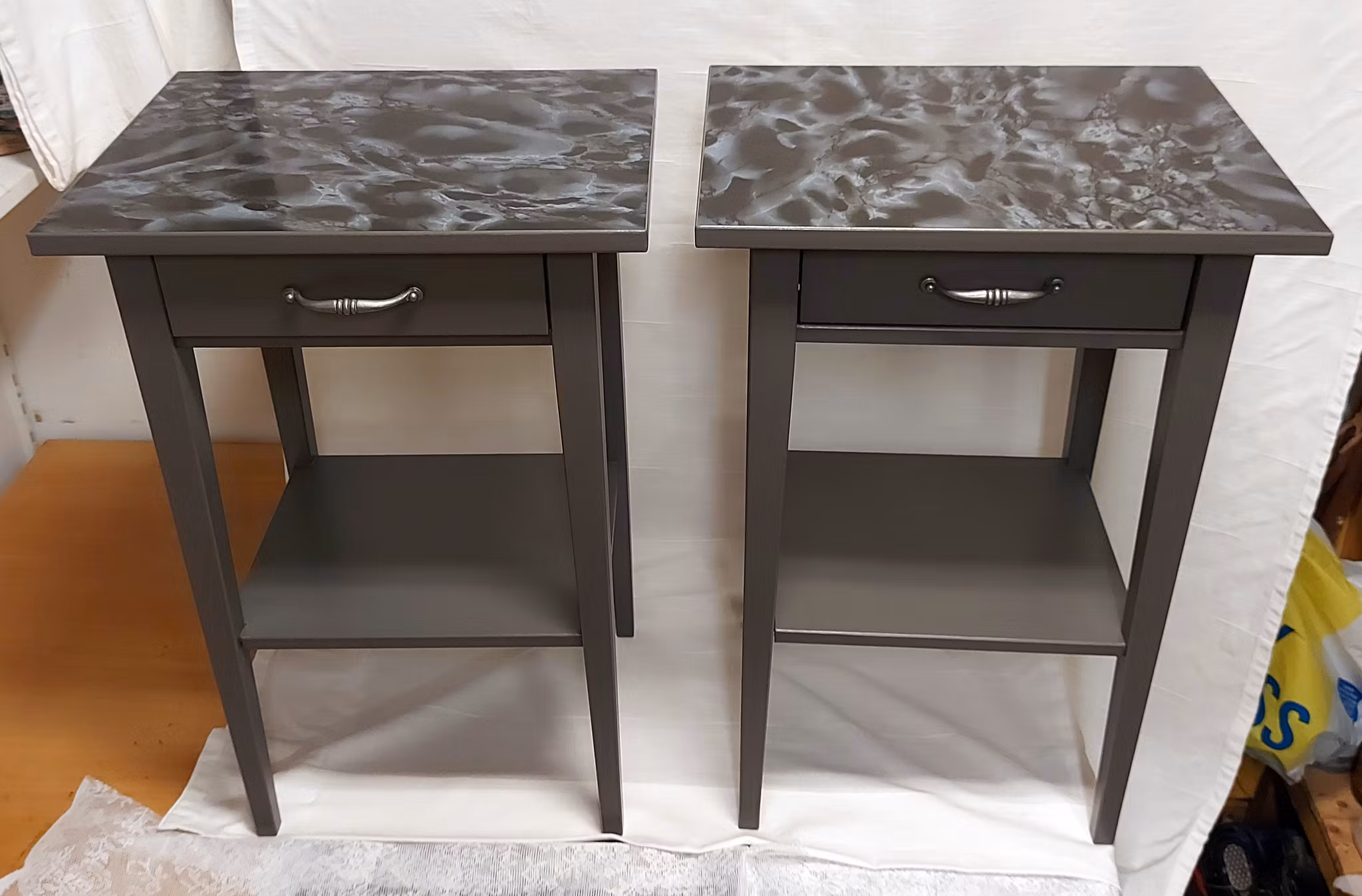 Hem › Sålda produkter › Hall-/sängbord M154 Hall-/sängbord M154 Produkten är tyvärr slut i lager. :( 2 st bord med låda och hylla, ommålade samt dc-fix ovansida, (ikeas hemnes). Säljes tillsammansMått: 46 x 35 sm höjd 70 cm Endast för avhämtning
