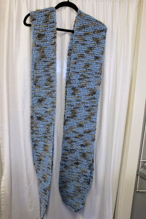 Halsduk, virkad blå/brun, två olika bredder.